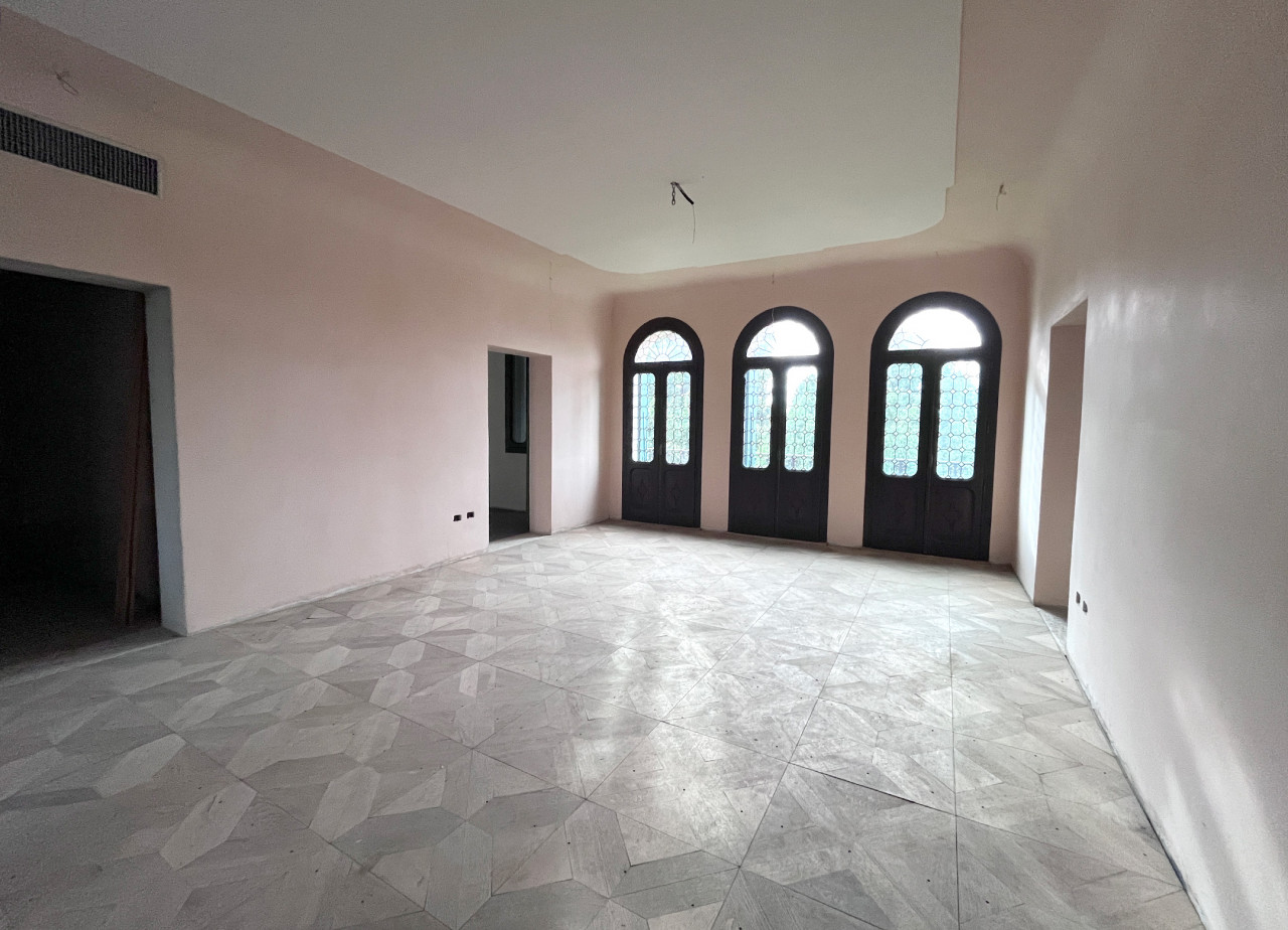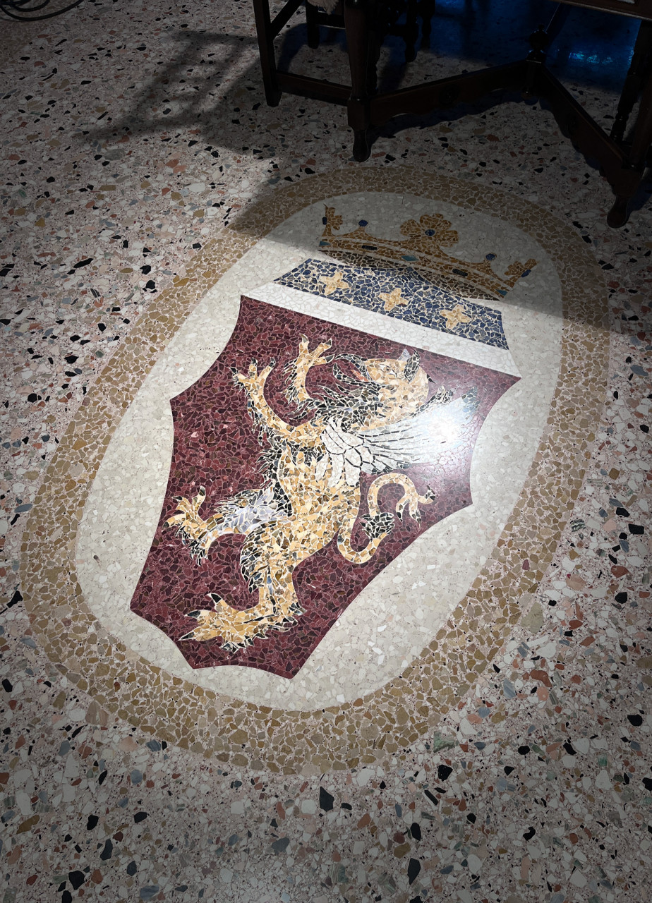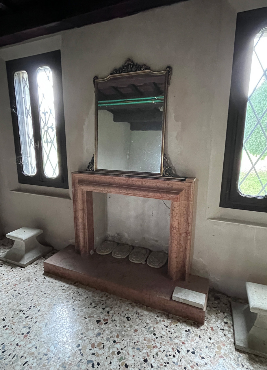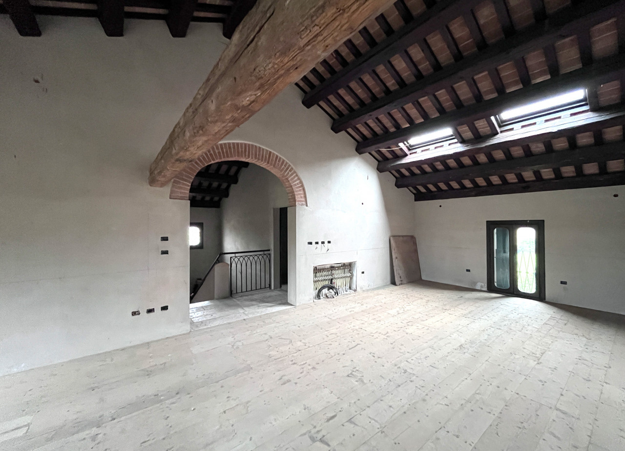 All’interno troviamo ambienti ampi e luminosi: l’ingresso introduce ad uno scenografico salone principale impreziosito da pavimentazioni in battuto veneziano decorate finemente, tra cui un suggestivo stemma nobiliare incastonato nel mosaico. Al piano terra vi attendono inoltre una cucina abitabile dotata di camino tradizionale, studio/stanza polivalente, bagno finestrato ed appartamento bilocale autonomo per ospiti o personale.